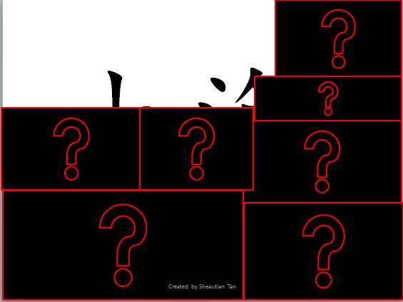 Reveal the box one by one, and get the students guess what characters hiding behind the box. Students may to say the answer in Mandarin/English.