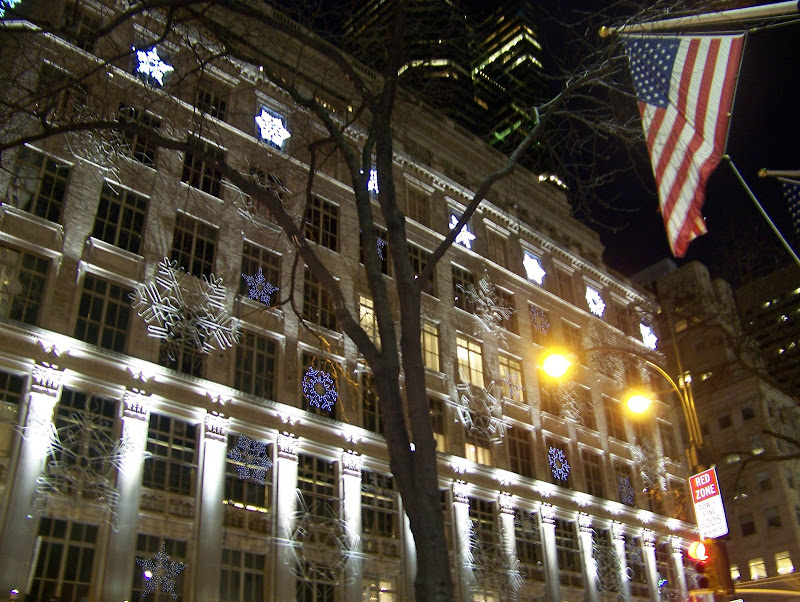 入夜來, 42街可是越來越閃亮, 大大的廣告看板, 漸漸的被會動的LED廣告取代, 百老匯大街有一段改是觀光客的步行區, 禁止車輛行駛, 還有桌椅讓人隨時歇息。洛克菲勒中心有美妙的音樂, 無線電城也裝上的聖誕樹。第五大道上的節日櫥窗更是年尾的特色。