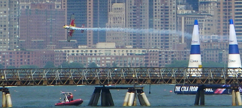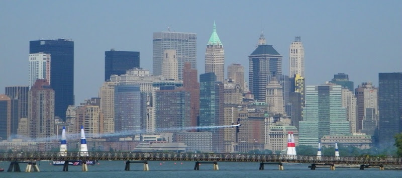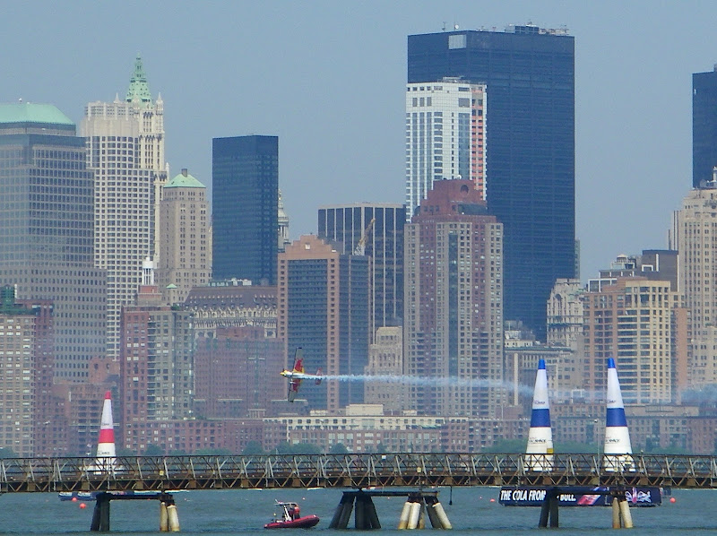 天氣還不錯, 決定到Liberty State Park去騎腳踏車, 這公園是觀賞紐約景觀的好地方。 沒有想到碰上了紅牛低空飛行比賽。 不但臨時搭了看台, 還有飛機的控制台。