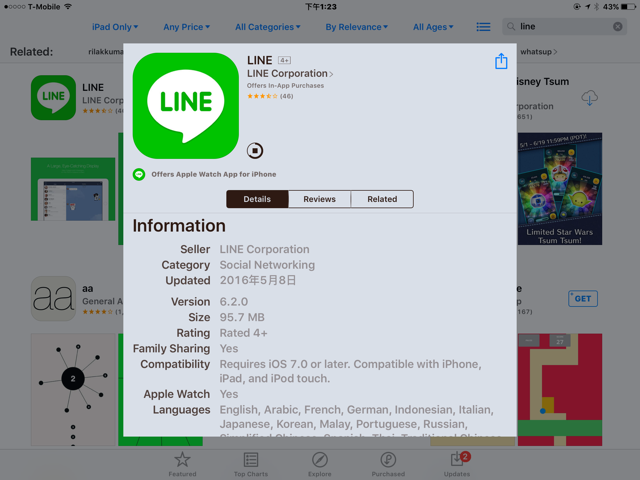 LINE本身並不提供 iPad版本的直接升級,尤其早期 iPad版本的問題實在很多,包括不能送出貼圖,也不能打電話。所以更換本幾乎很難發現。今天幫好友檢修 iPad的問題,才發現這些缺失已經都修復了。升級的辦法必須刪除舊版,然後再下載新的版本。